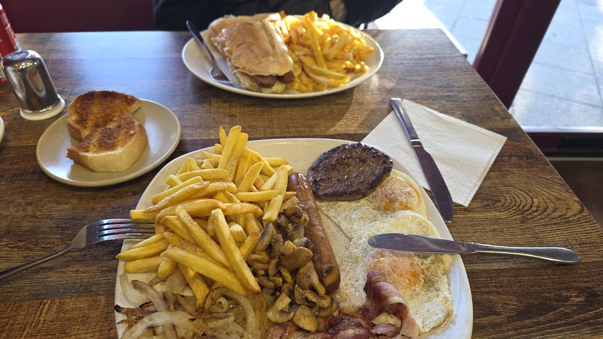 The atmosphere leans towards practical and clean, with a focus on quick, friendly service rather than lingering over coffee. You’ll find well-prepared, hearty dishes like their Cheese and Mushroom Omelette with Chips or the more traditional Black Pudding Beans—both offering substantial portions that feel just right after a morning walk or a long drive. The menu also features comforting choices such as homemade milkshakes and a range of paninis, including interesting options like Halloumi & Sucuk, which add a touch of local flavour without overcomplicating the menu.