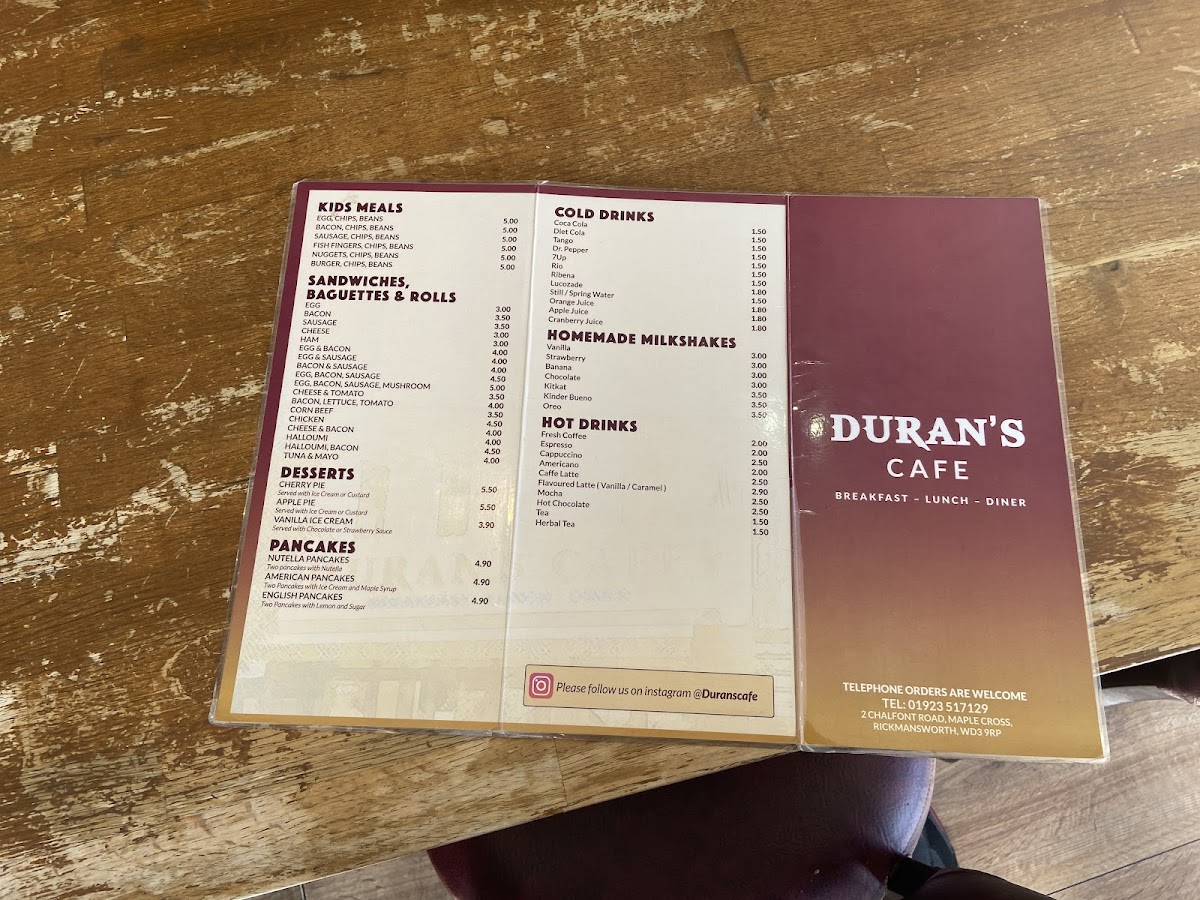 Duran's Cafe Menu