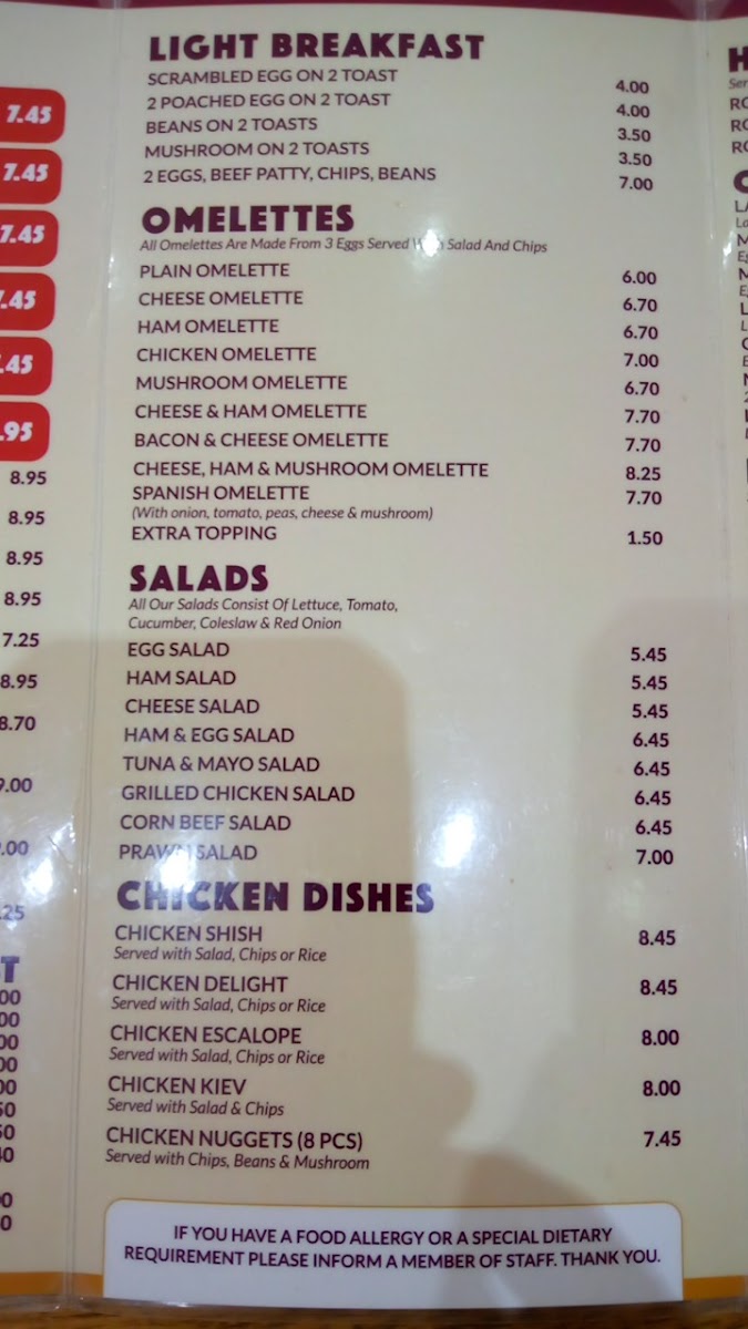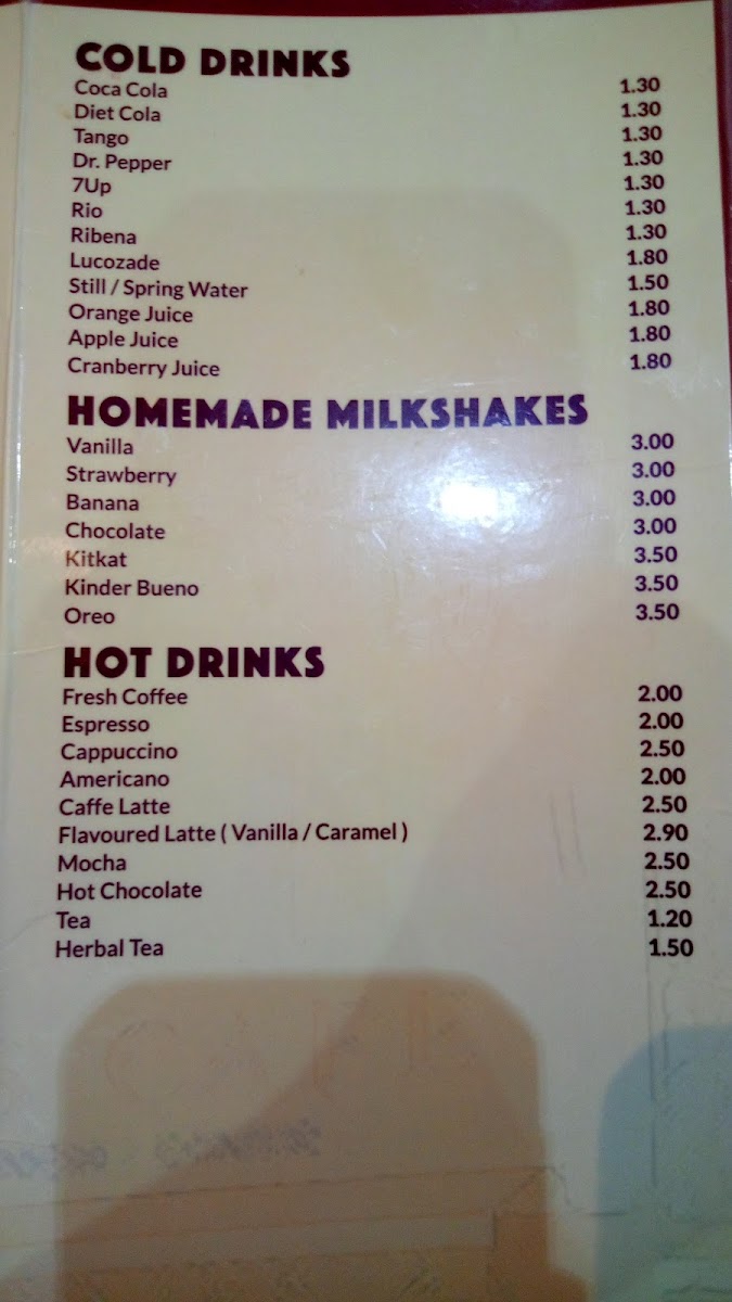 This structure supports a range of dining occasions from morning breakfast to light lunch or a casual snack. The menu allows for straightforward ordering with clearly defined sections, suitable for visitors looking for familiar cafe-style meals and light desserts.